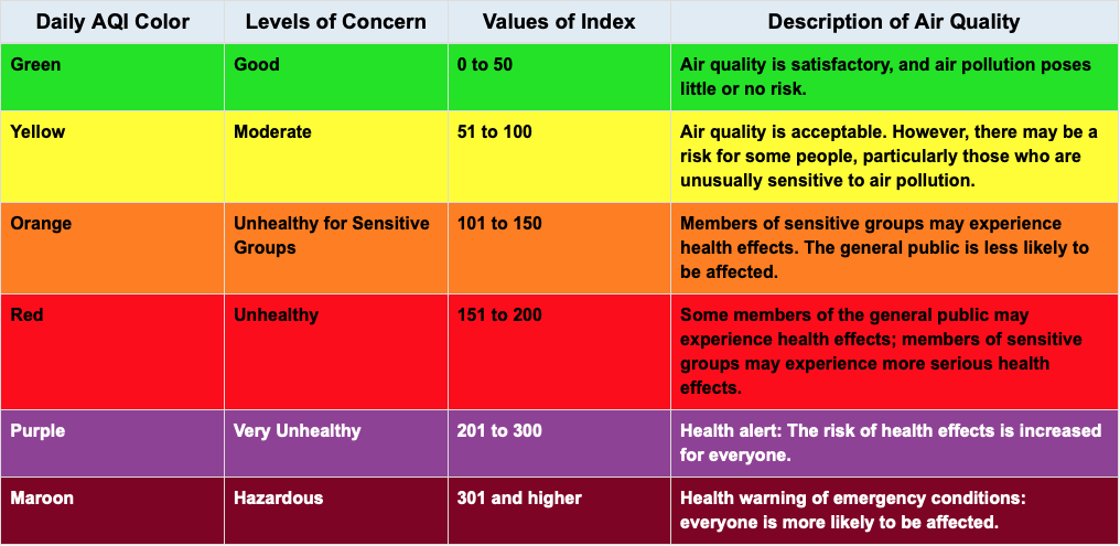 The below map from Purple Air shows the current Air Quality Index (AQI) at each of our monitoring stations in Santa Ana.
